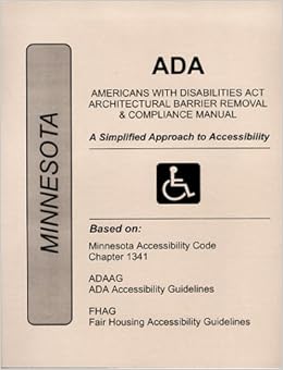 A state-specific Americans with Disabilities Act compliance manual for the State of Minnesota, to aid in barrier free design considerations for buildings and facilities, for the disabled.